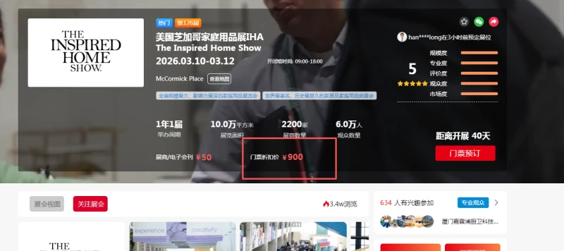 Limited-time discount price for the IHA Home Products Show 2026 in Chicago, USA, as low as 900 RMB per person.