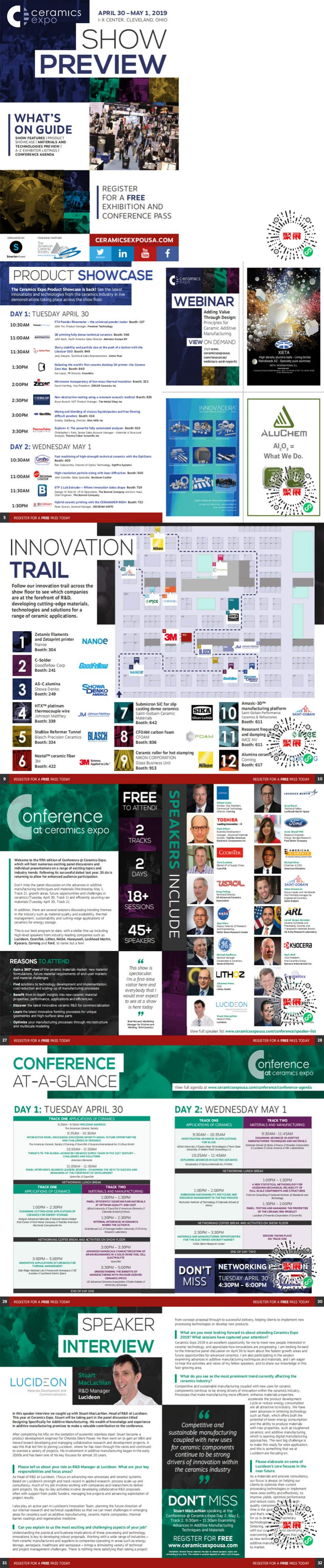 The Ceramics Expo is the largest and most influential industrial ceramics and refractories trade show in the United States. It brings together manufacturers and engineers from the medical, automotive, electronics, aerospace, defense, and energy sectors, allowing like-minded professionals to explore new materials and technologies and discuss the challenges and opportunities facing the ceramics industry.